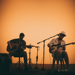 Big sound, small setup: acoustic guitar, live drums, rich harmonies and face-melting guitar.